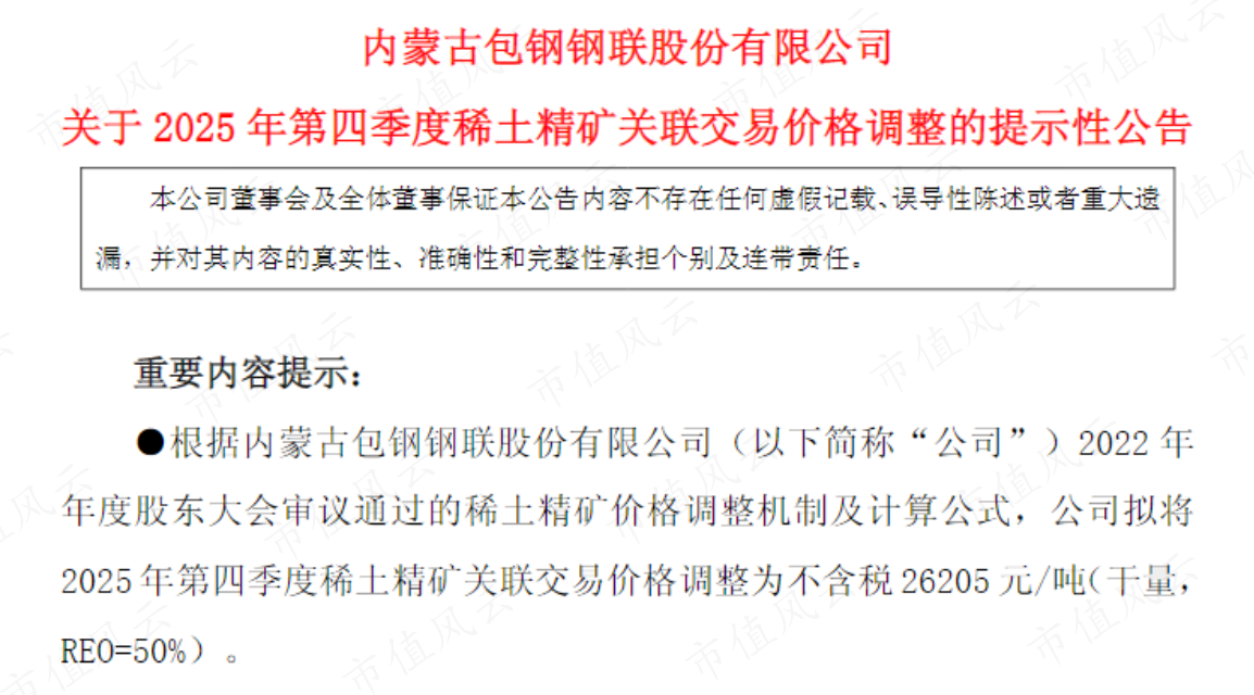 市场对此反应迅速且激烈。巨头企业随即上调产品价格,例如包钢股份与北方稀土将2025年四季度稀土精矿价格环比上调超30%。
