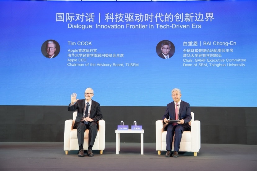 在“国际对话:科技驱动时代的创新边界”环节,苹果公司首席执行官、清华大学经管学院顾问委员会主席蒂姆·库克与全球财富管理论坛执委会主席、清华大学经管学院院长白重恩展开对话,围绕人工智能、数字技术与金融创新的融合路径进行深度交流,探讨科技如何拓展金融服务与财富管理的未来边界,揭示技术变革的核心驱动力,也为全球资管行业在数字化浪潮中的创新发展提供前瞻视角。