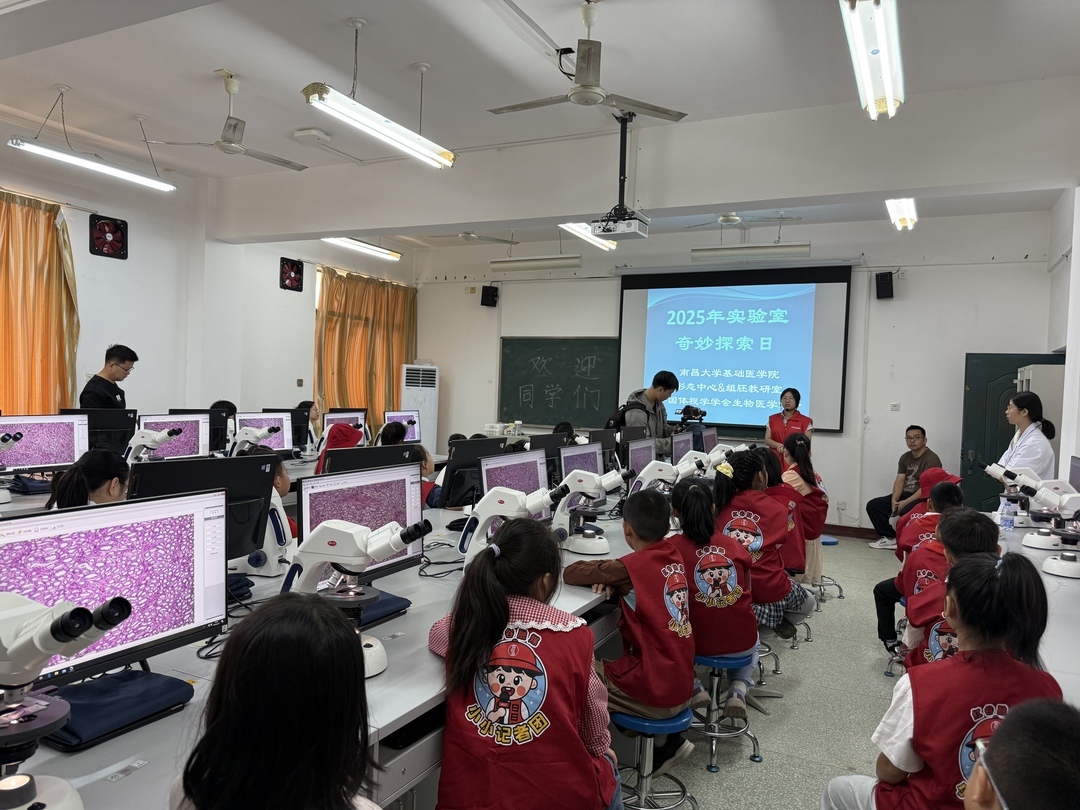为激发青少年对生命科学的兴趣,培养科学探索精神,同时提升小记者们的新闻素养与实践能力,10月18日,红谷融媒小小记者团携手南昌大学教职工子女走进南昌大学基础医学院,参加该学院“2025年实验室开放日”活动,开启了一场沉浸式的生命科学探索之旅。