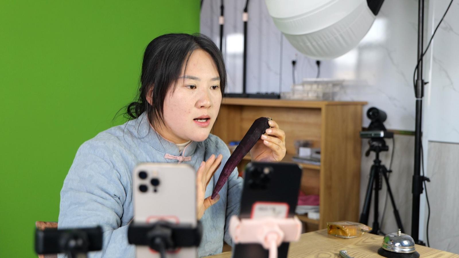 地标农产品成“网红”,订单排到地头。在公司直播基地,主播正对着镜头展示产品,屏幕上订单提示音此起彼伏。据了解,今年该公司共种植了800多亩胡萝卜,涵盖黄、红、紫等多个品种,亩产可达3000公斤左右,目前已经销售了200多亩地的产量,已下订单还有300亩地的产量。