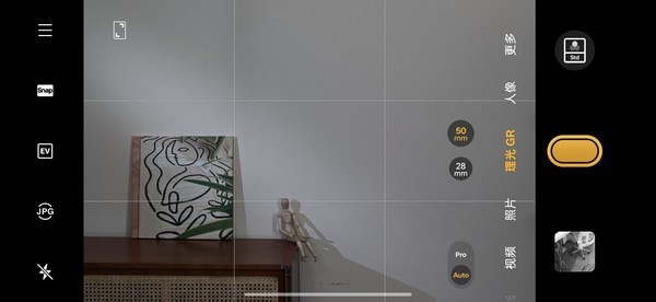 理光GR模式的启动方式也很简单,一种是相机界面左滑进入理光GR,另一种是启动相机后直接下拉快门键,也可以快速启动理光GR模式,尤其是后者可谓是点睛之笔。在理光GR模式下,真我从色彩科学、颗粒模拟、暗角控制等多个维度,深度复刻了标准、正片、负片、单色、高度比度黑白五大经典胶片影调。