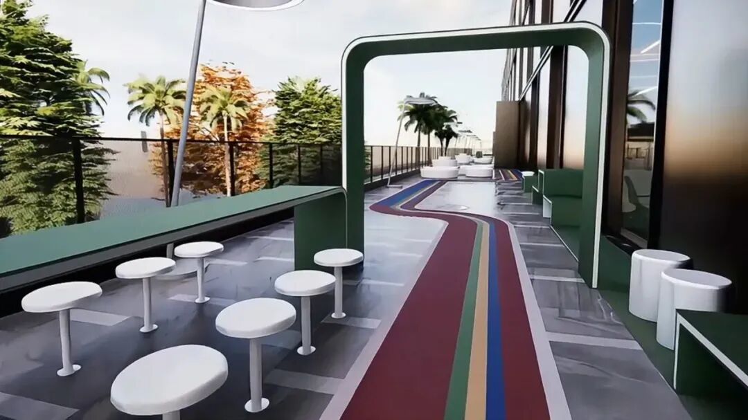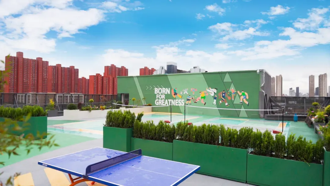 除了办公功能,新办公室1层还配备有400平方米综合健身房和专业瑜伽区;3层配备休息座椅、花池、遮阳雕塑和高空跑道;屋顶露台设有一个标准篮球场地、两个羽毛球场和乒乓球桌。