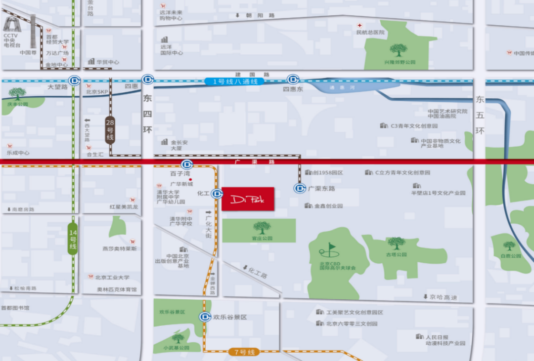 公开资料显示,数科公园位于朝阳区广渠路与广化大街交汇处东南侧,占据东四环广渠路旁的黄金地段,园区入口即地铁7号线化工站出口,占地面积3万平方米,原为北京市百货大楼旧仓库,由王府井集团旗下王府井置业开发和运营,是其在办公领域的首部作品,定位为“公园里的写字楼群”,园区内打造了面积1.8万平方米的生态园林景观,讲究一步一景。