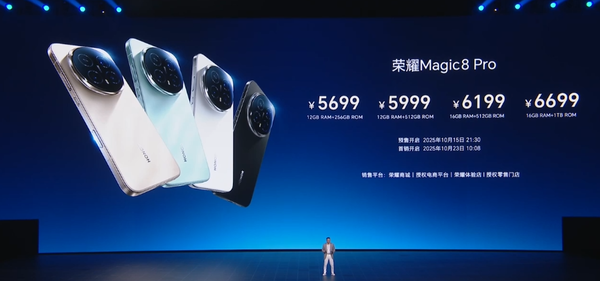 价格方面,荣耀Magic8起售价为4499元,荣耀Magic8 Pro起售价为5699元。用户购机最高可享24期免息、赠送荣耀手环9、一站式换新最高补贴1200元、赠1年碎屏宝+1年后盖宝+2年电量宝等礼品福利。