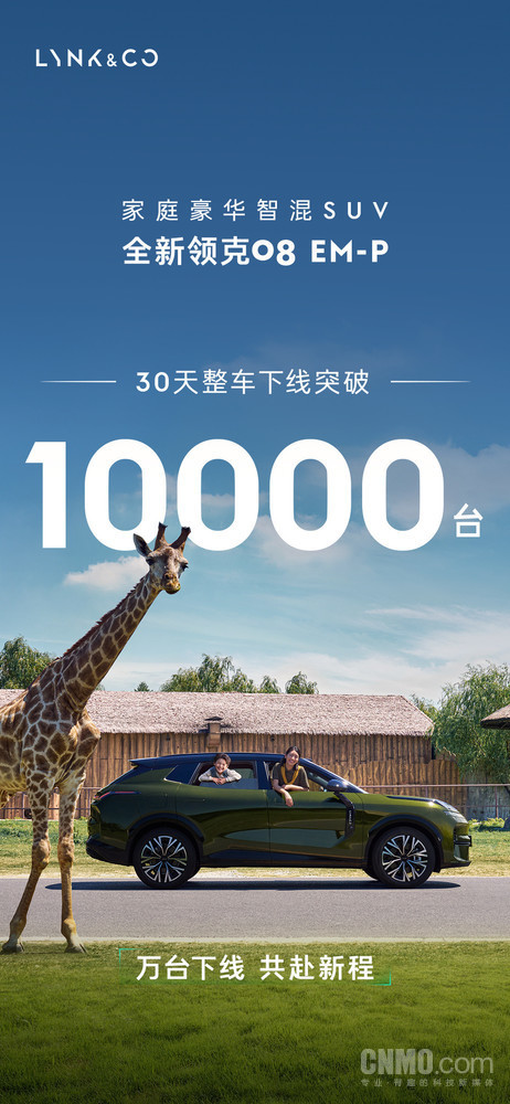 【CNMO科技消息】10月23日,CNMO注意到,领克汽车官方宣布,家庭豪华智混SUV全新领克08 EM-P上市30天,整车下线突破10000台。