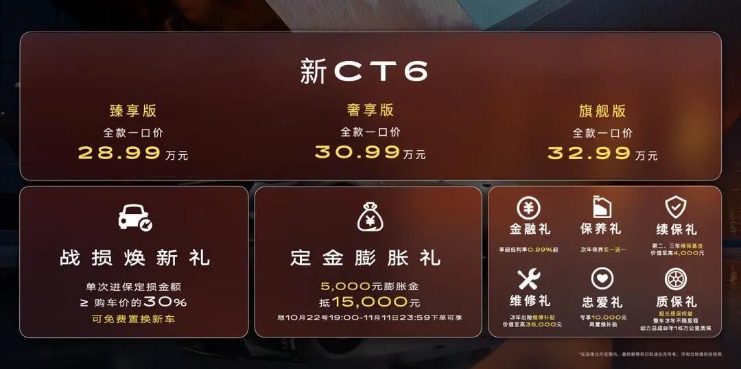 此外,扉旅汽车还注意到,此次新CT6上市,凯迪拉克品牌带来了目前行业唯一的“战损焕新礼”,即3年内若单次车损超购车价30%,可免费置换新车。对产品信心满满,也彰显品牌诚意十足。