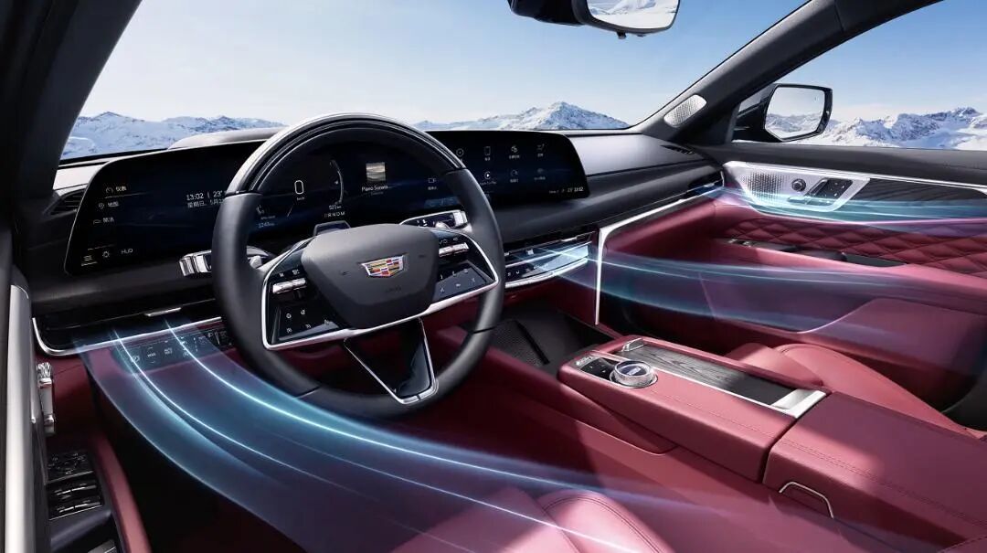 内饰方面,致力于打造优雅、宽适的内部空间,新CT6搭载环抱式游艇级座舱,全系标配33英寸9K环幕式超视网膜屏,搭配斩获红点设计大奖的OTA V5.0车机系统,带来沉浸感十足的视觉体验。全彩HUD飞航显示仪,采用1.8 inch大尺寸全彩高清TFT,可显示导航、ADAS、通讯等全方位信息,亮度会根据环境光自动调节,确保驾驶员在强光下也能抬头可见高清图像。