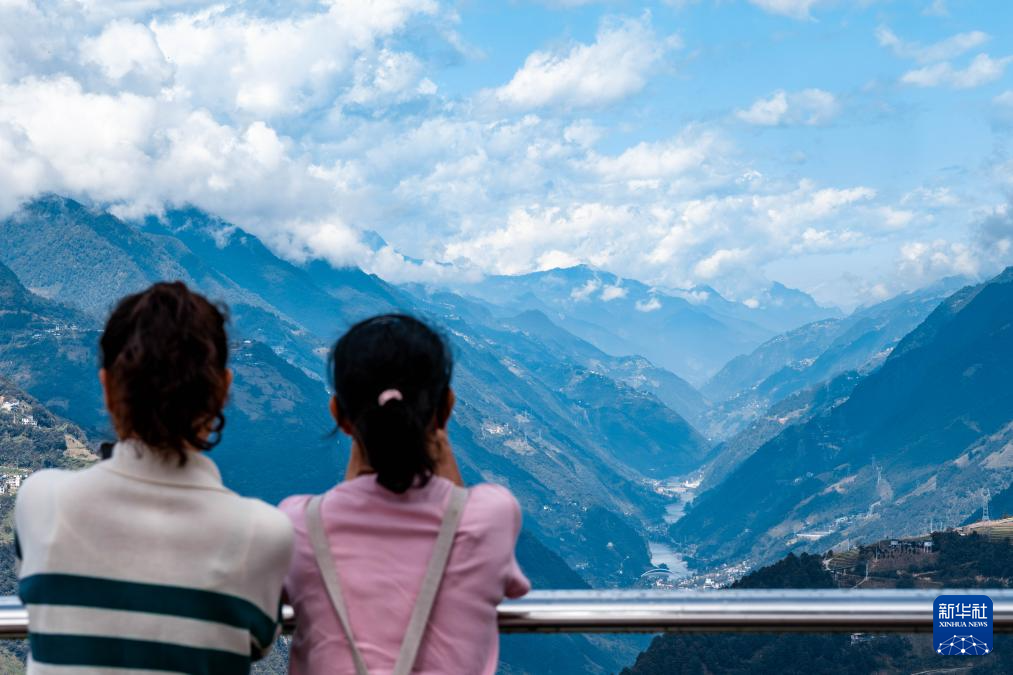 游客在老姆登村的观景台拍摄怒江大峡谷风光(10月20日摄)。