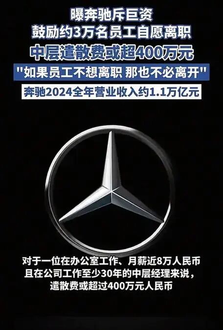 近日,据媒体报道,在梅赛德斯-奔驰实施的裁员计划中,已有约4000名员工接受遣散方案离职。离职补偿方面采用梯度设计,与职级、工龄直接挂钩,还设置了“加速奖金”激励员工尽早决策,其中对于资深管理人员最高提供50万欧元的补偿金。