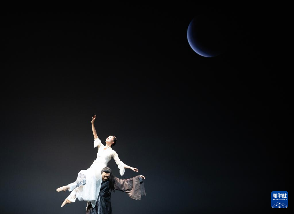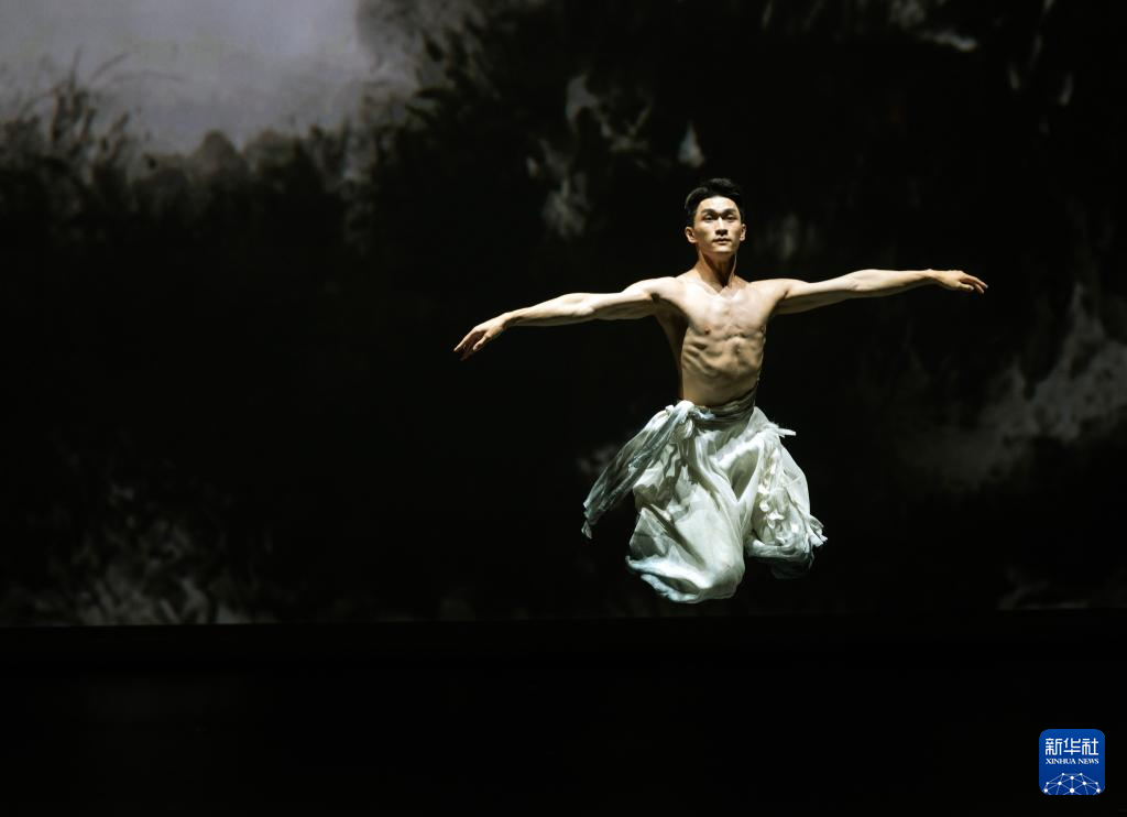 10月25日晚,北京舞蹈学院青年舞团演员在新市古镇专场演出中表演《水墨孤鹤》。