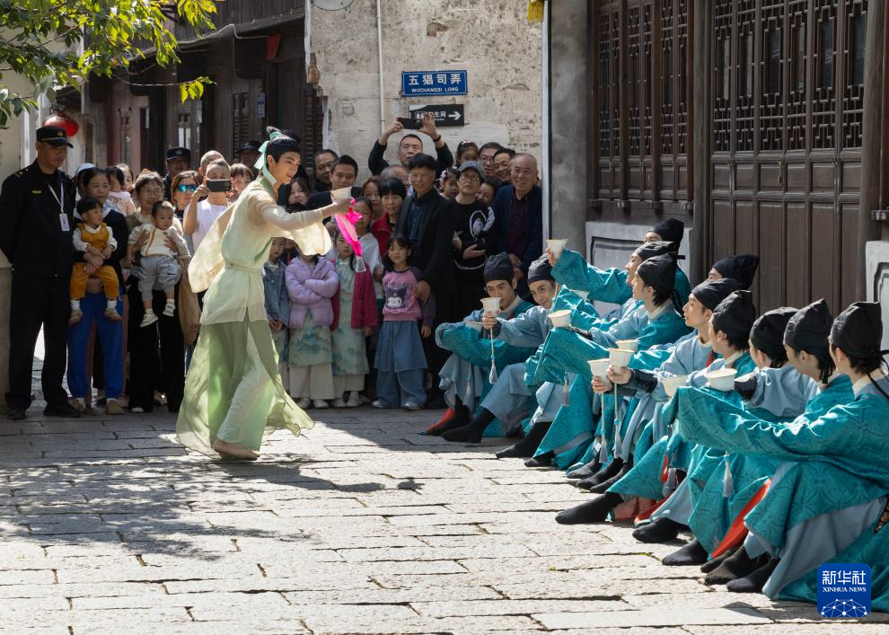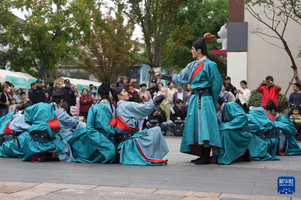 10月26日,浙江歌舞剧院演员在新市古镇表演舞蹈《鹿鸣宴》。