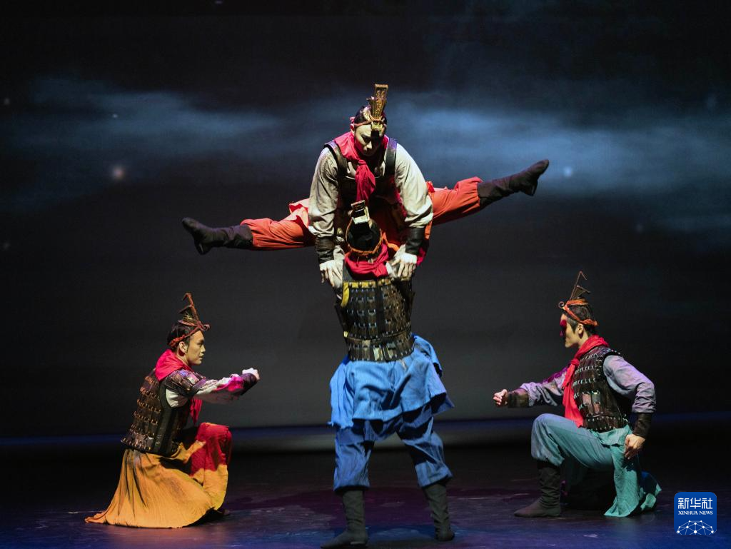10月25日晚,北京舞蹈学院青年舞团演员在新市古镇专场演出中表演《秦王点兵》。