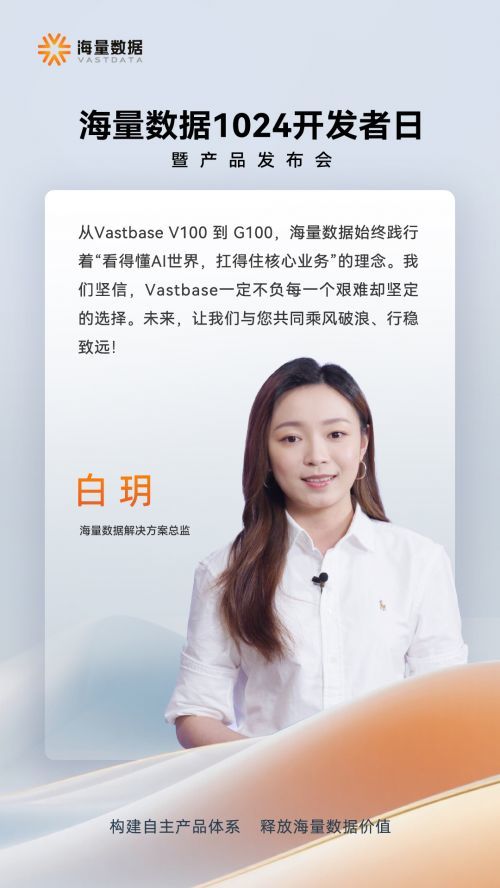 “看得懂AI世界,扛得住核心业务”。10月24日,北京海量数据举行了2024年1024开发者日暨产品发布会,正式发布面向企业级AI应用的原生向量数据库Vastbase V100,并同步解读了Vastbase G100的全新内核升级成果。本次发布会在线上圆满落幕,吸引了来自金融、医疗、制造、通信等多个行业的专家与客户参与。