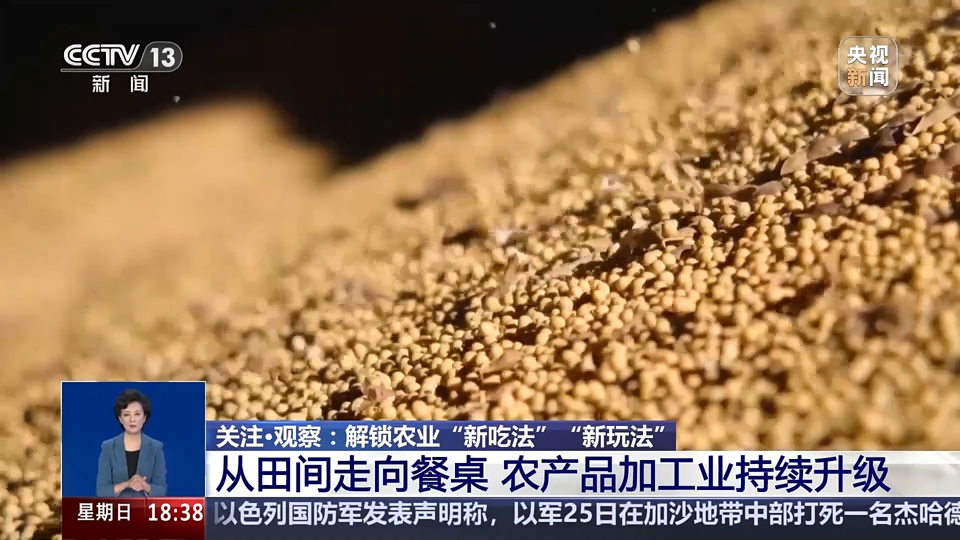 在中国农科院农产品加工研究所的展示区,冻干粥、马铃薯面条、整鸡提取的蛋白饮品等创新成果琳琅满目。这个展柜上集中展示了各式大豆制品:大豆蛋白饮料、大豆风味盐、新型冻豆腐……不仅在科研院所,在广袤的沃野上,精深加工技术的迭代升级也不断丰富着市场供给。