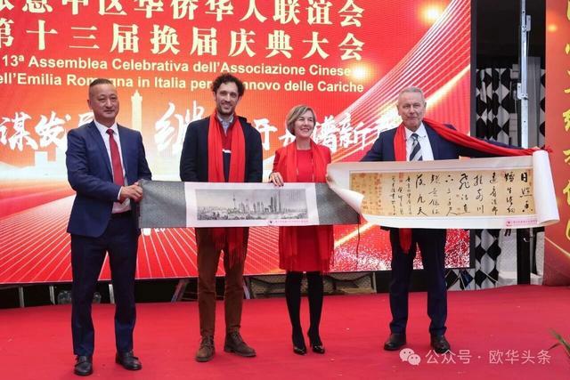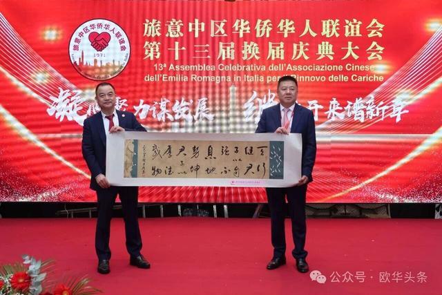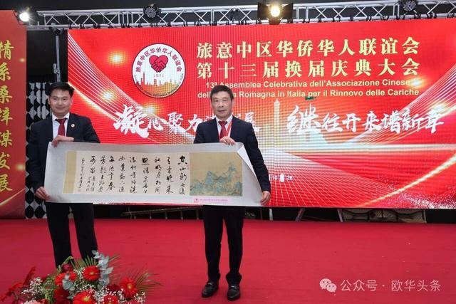 在热烈而庄重的氛围中,旅意中区华侨华人联谊会举行了纪念品赠送仪式。新任会长蔡焕忠及理事会成员向各位嘉宾代表赠送纪念礼品,以表达感谢与友谊。