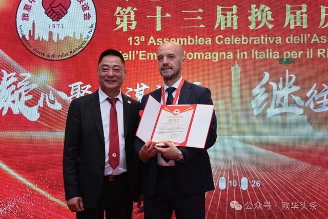 (欧华头条 陈静)2025年10月26日,旅意中区华侨华人联谊会第十三届换届庆典大会在意大利博洛尼亚市隆重举行。中国驻米兰总领事刘侃,博洛尼亚市市长Matteo Lepore,浙江省温州市侨联副主席董邦云,以及来自欧洲各国和意大利各地区的500多名中意各界友好人士欢聚一堂,共同见证这一具有重要意义的盛会。