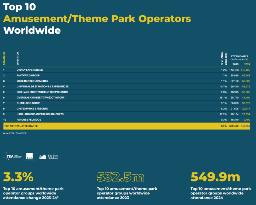 全球十大主题公园运营商名单 图源:2024TEA全球体验指数报告