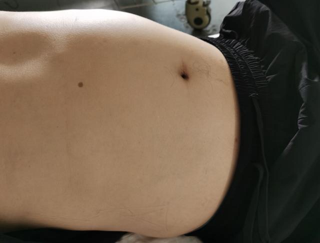 (▲刘先生腹部逐渐膨大,体重却下降了10余斤。)