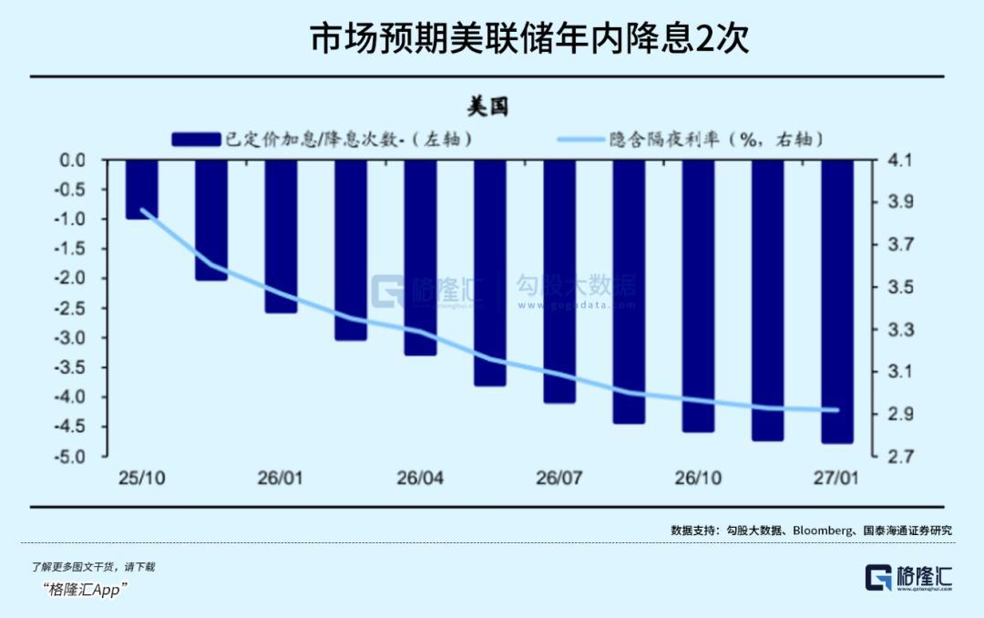 上周市场对美联储月内和年内双重降息的预期还进一步升温。从全年维度看,截至10月24日,期货市场隐含利率显示市场预期美联储年内降息2次。
