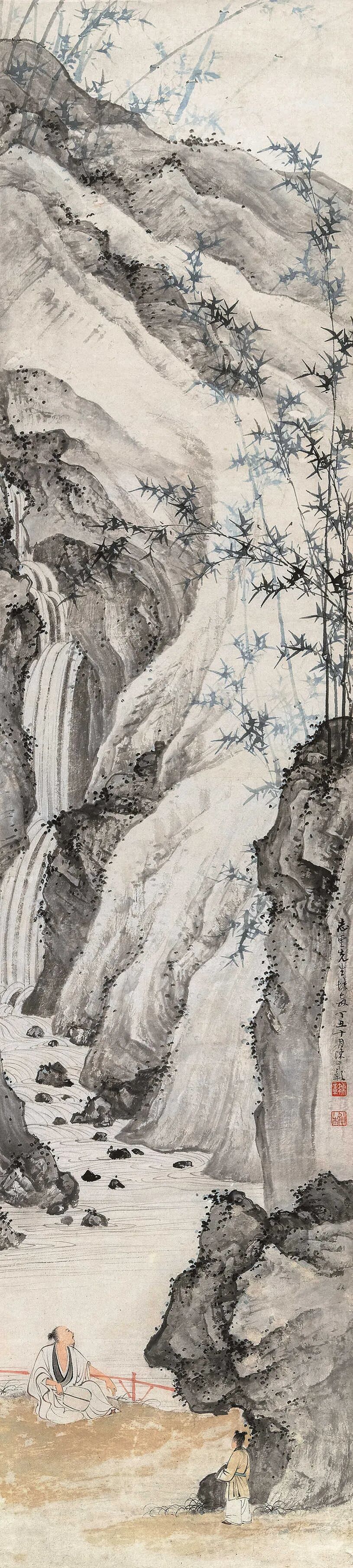 陈少梅 竹溪观瀑