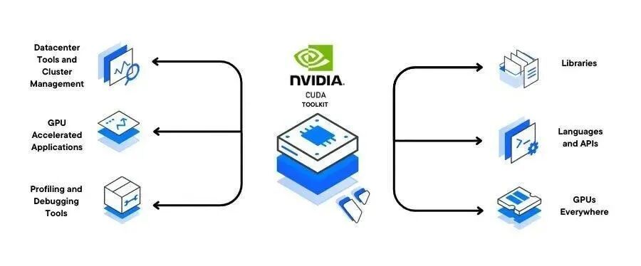 超强GPU(图形处理器)+CUDA(编程模型和并行计算平台)+安装基础+系统级集成+软硬件深度优化形成的整体生态网络效应,构成了其深厚的技术壁垒。