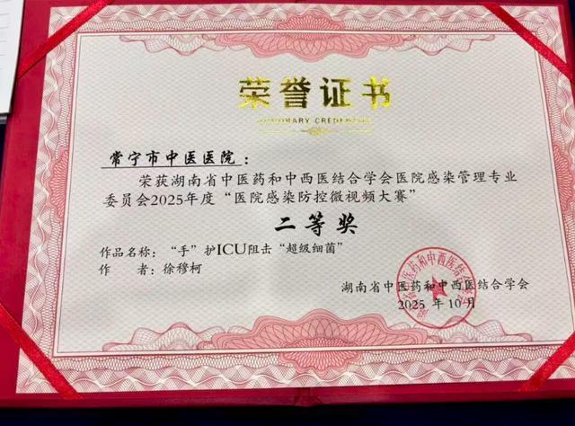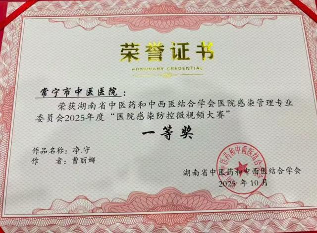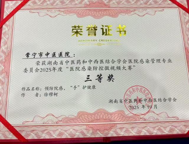 常宁市中医医院此前曾在该学会主办的感染管理竞赛中斩获佳绩,此次再获殊荣,彰显了其在院感防控领域的持续深耕与显著成效。