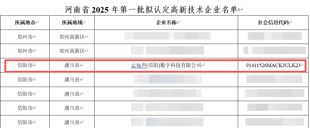 近日,云知声(信阳)数字科技有限公司成功通过河南省2025年第一批高新技术企业认定。这一资质的获得,不仅是对企业在人工智能领域技的技术实力与产业落地能力的认可,更标志着其扎根中原、深耕AI产业的发展之路迈入新阶段。