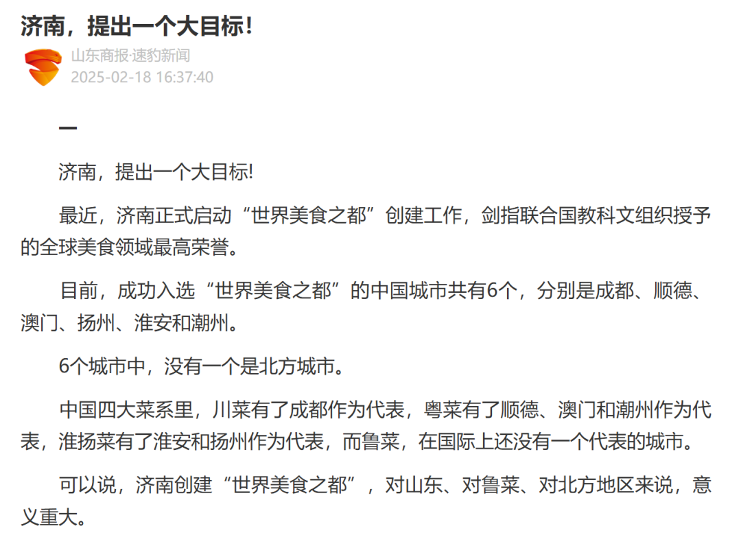 🔺济南某部门对世界餐桌、鲁菜之都的高瞻远瞩。