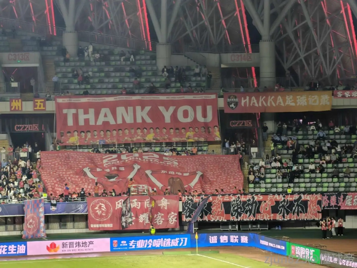 北京时间11月1日,中超第29轮,梅州客家坐镇主场面对大连英博的比赛正在进行中。根据我懂用户 前方发来的图片,梅州赛前Tifo出现了投资人魏晋平和全体队员的长幅合影。