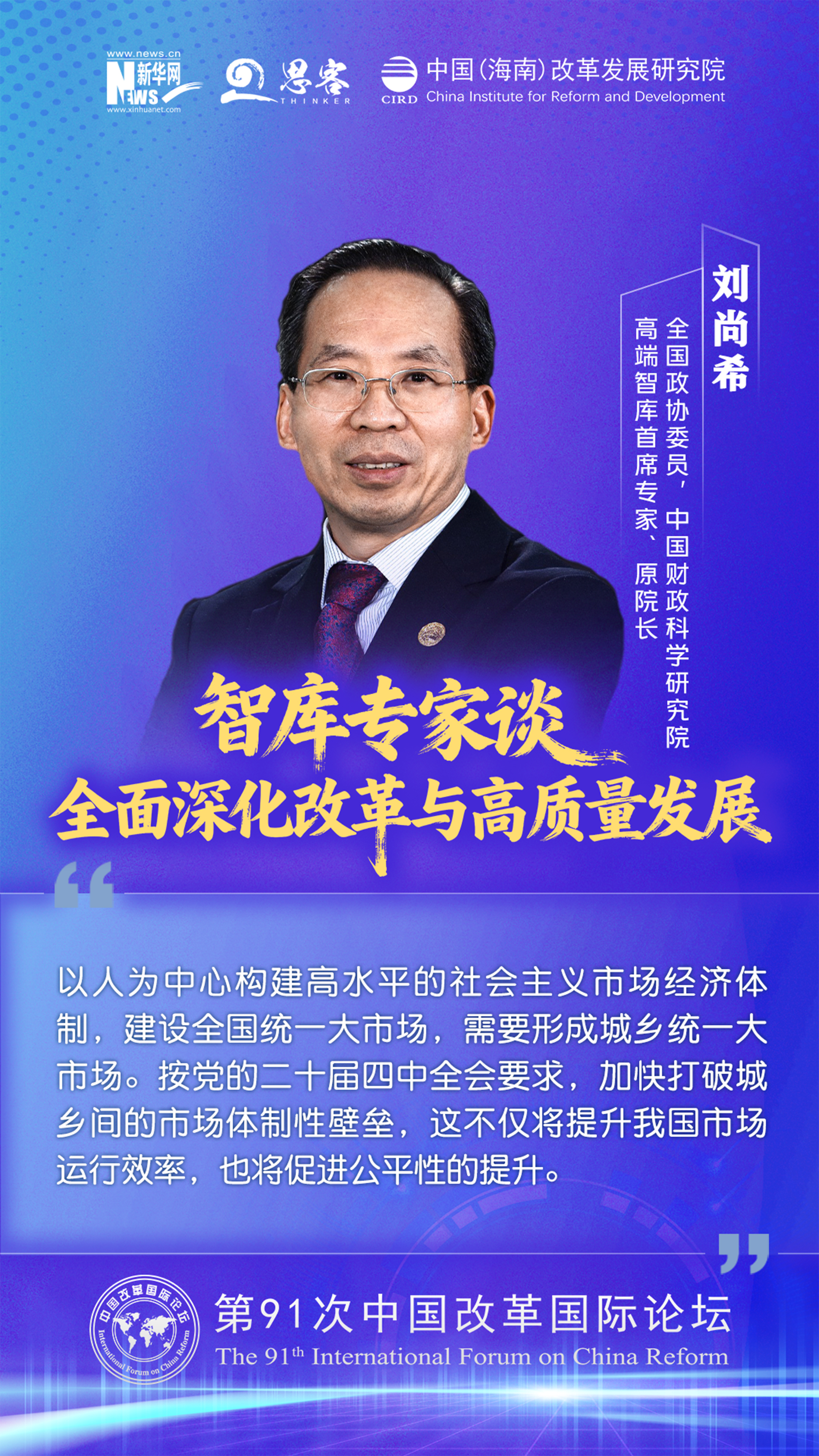 刘尚希:全国政协委员,中国财政科学研究院高端智库首席专家、原院长