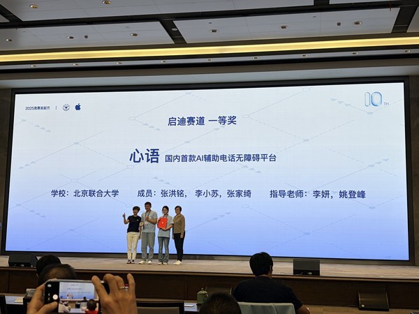 来自北京联合大学的同学们,设计开发了一款名为“心语”的应用。其开发初衷正是源于团队成员在通话交流、生活购物、课堂学习中碰到的诸多苦恼,这款App能够实现AI自动应答和文字转语音的即时表达,提升沟通效率。