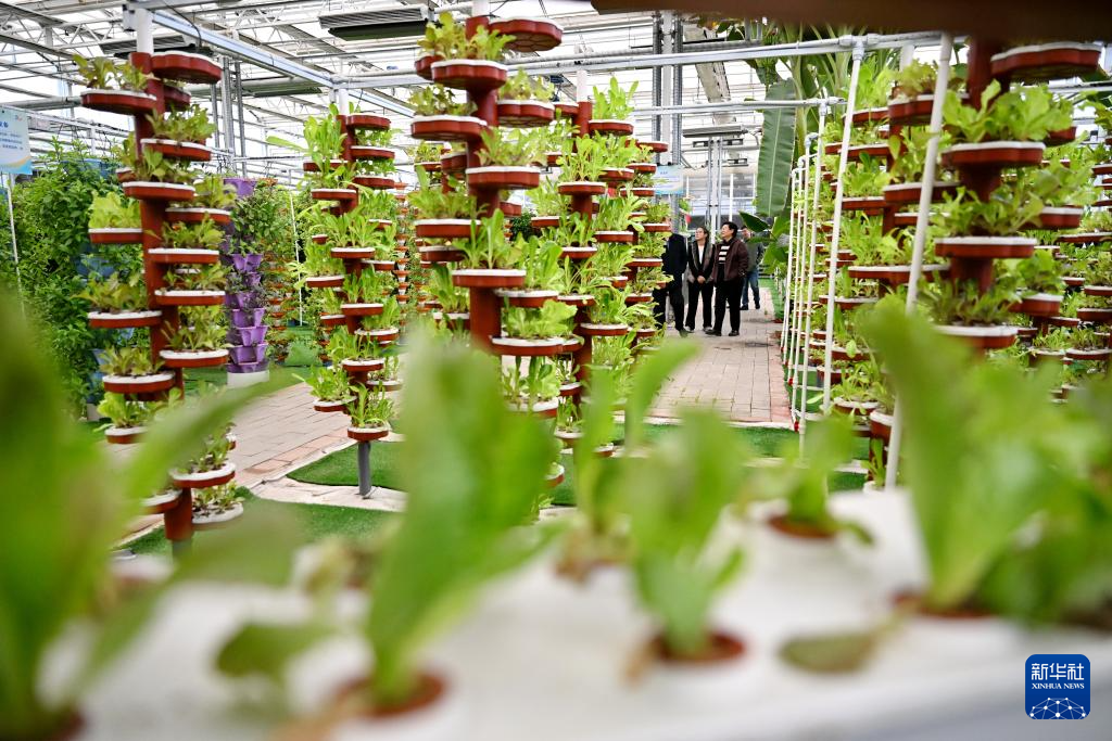 10月31日,游客在大运河堤顶路沿线的河北省沧州市青县司马庄村智能蔬菜大棚内参观。