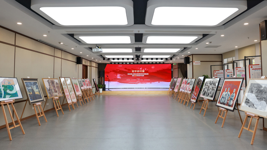 “和平的守望”由上海市美术家协会、上海市文艺培训指导中心、上海新文艺工作者联合会、上海市欧美同学会留苏分会共同策划主办,自今年8月在上海市文联完成首展之后,先后在长宁区工人文化馆、嘉定区菊园新区社区党群服务中心的市民展厅、嘉定区安亭整震川美术馆、奉贤区庄行镇海上贤韵非遗活态馆等地巡展。此次在静安寺街道党群服务中心的展览,精选30件体量适中的高水准美术作品,涵盖油画、水粉画、中国画、雕塑、木刻、连环画等多种形式,凝结着中华民族在浴血奋战的年代顽强不屈的精神,也展开新时代中华民族伟大复兴的壮丽图景。