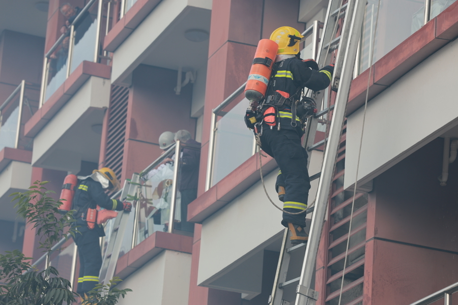 消防指导员现场展示养老场所专项指导服务,随后一场紧张有序的养老机构应急疏散演练精彩上演。演练模拟火情发生后,养老院护理人员迅速协助机构职工规范完成人员疏散转移,微站迅速出动进行先期处置。消防救援人员到场后利用云梯车、拉梯开展救援作业,成功营救阳台及高层被困人员,搜救组深入火场,使用救援转运椅、担架救出内区被困老人,攻坚组利用消防水炮、大功率水罐车等全面实施灭火。经过10分钟左右紧张有序的救援,“火灾”被成功扑灭。
