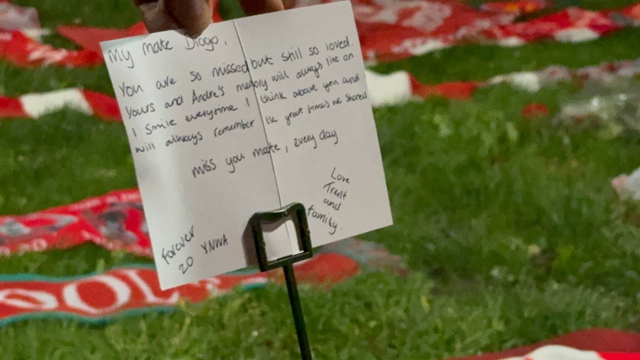 阿诺德在安菲尔德外摆放的鲜花丛中向若塔献上的感人悼念,进一步凸显了这次回归默西赛德对他的特殊意义。