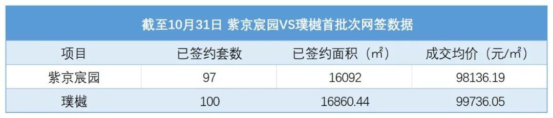 据北京住建委官网截至10月31日晚间数据显示,10月12日率先开售的紫京宸园已签约套数为97套,成交均价为9.81万/平方米;10月17日开盘的璞樾家园已签约套数为100套,成交均价为9.97万元/平方米。