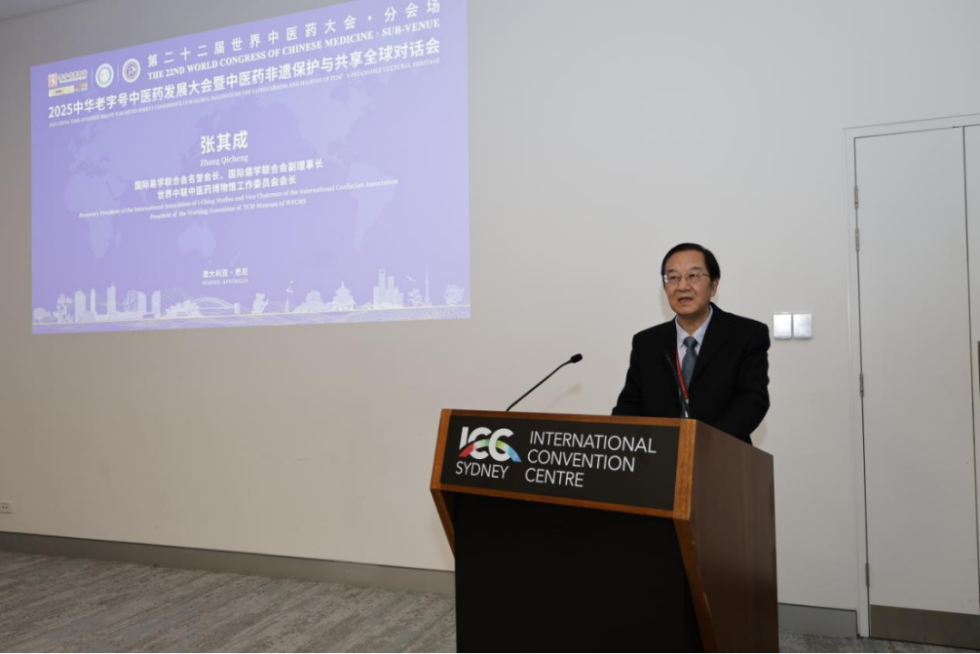 张其成在开幕式致辞中说:中华老字号中医药企业是中医药传承发展的见证者、亲历者和优秀代表。每一家老字号都是一部活着的历史,他们从字号草创到品牌焕新,都始终保持着“济世寿人”的仁德初心,遵循“炮制虽繁必不敢省人工,品味虽贵必不敢减物力”的祖训,坚持“修合无人见,存心有天知”的信仰,奉行“但愿世间人无病,哪怕架上药生尘”的合义取利原则。这些古训承载的不仅是制药准则,更是中华文明的核心价值。这些老字号珍藏的,不仅是世代相传的秘方良药,更是绵延千年的匠心信仰;不仅是治病救人的非遗技艺,更是启迪心灵的智慧明灯。它们如同散落的文化明珠,等待着被重新串联,绽放出更加璀璨的光芒。然后他介绍了正在进行的两项工作,一是调研整理中华老字号中医药企业的历史文脉、梳理中医药老字号的品牌故事;二是正在建设“中华老字号中医药博物馆”。最后,他建议要借世界中医药学会联合会这个平台,让世界各地的朋友在体验中医药技术服务的同时,更积极的感知中华文化的精神追求和生命关怀,在共享中医药老字号产品的同时,更理性公允的检验中国品质,积极寻求价值共识和标准接轨。