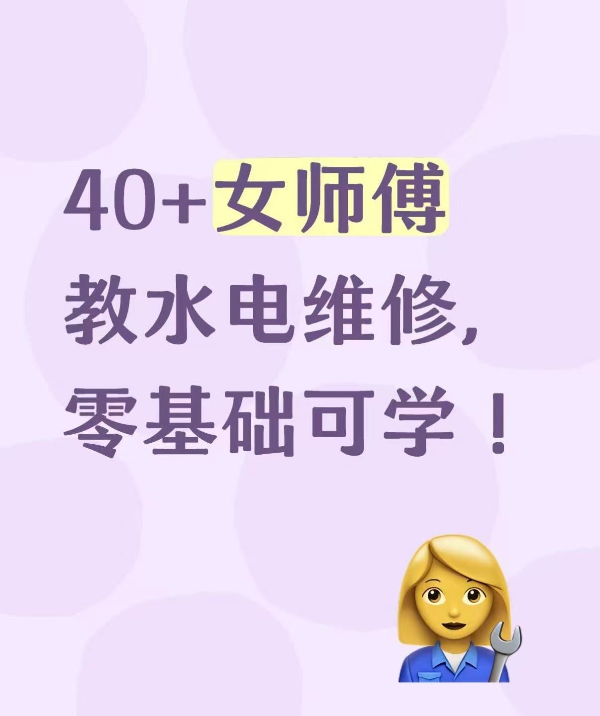 其实,赵女士平时会分享自己漏水检修、更换马桶水件、换角阀、装花洒等工作日常。同时,她也公开表示,欢迎有想法的女生来武汉,实地连日培训,学习水电维修等技能,零基础也可学会。