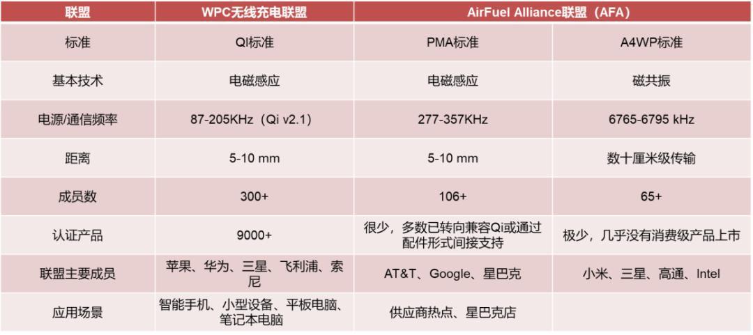 Qi协议由WPC(Wireless PowerConsortium)主导制定,其会员机构包括了华米OV以及苹果、三星等终端大厂因此覆盖的终端产品较多,生态体系亦较为完善,Qi发展的过程中,由于存在自由度、距离等方面限制,因此作为i代表成员的三星,高通开始投向A4WP的怀抱。Qi协议在消费电子领域的应用最为广泛。