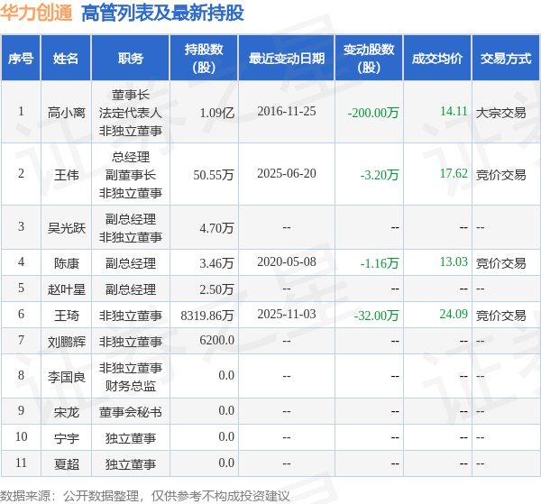 华力创通的高管列表及最新持股情况如下: