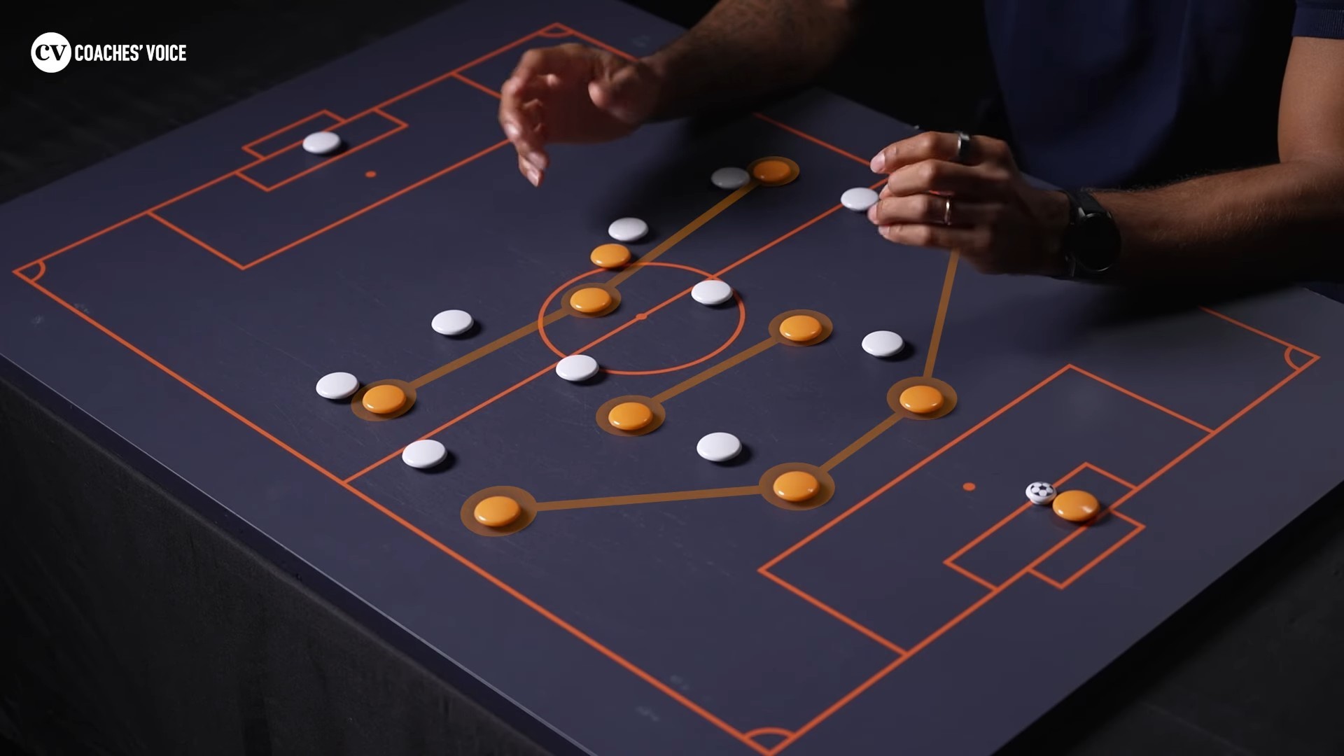 他要求我们始终保持斜线传球和斜向接球的意识。这样你在接球时就能直接完成下一脚传球,或进行一对一,从而为球队创造优势。占据正确的区域能让你更清楚地看到对手的站位。我们必须时刻去寻找他们背后的“肩部空间”。稍微前提一点,就能在有利位置接球、传出致命一脚。