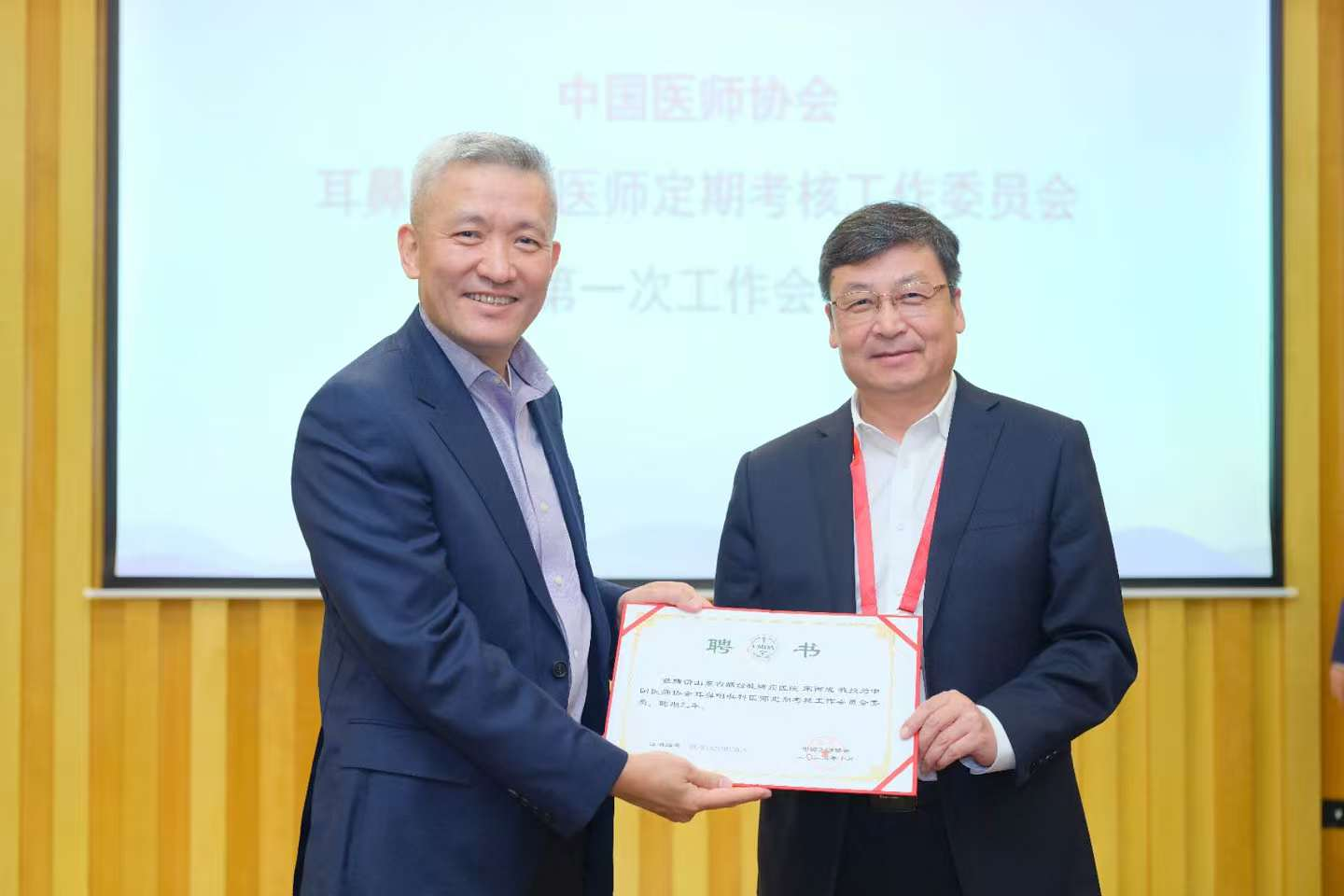 会议期间,宋西成受邀参加中国医师协会耳鼻咽喉头颈外科医师分会会议,受聘为中国医师协会耳鼻咽喉科医师定期考核工作委员会委员,并当选为中国医师协会耳鼻咽喉毕业后医学教育委员会全国副主任委员,中国医师协会耳鼻咽喉头颈外科医师分会会长、首都医科大学校长张罗教授亲自为其颁发聘书。此外,宋西成还受邀担任住院医师规范化培训人民卫生出版社规划教材《耳鼻咽喉头颈外科学》编委。