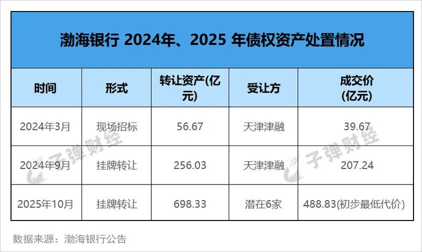 这是自2024年以来,渤海银行第三次处置债权资产。