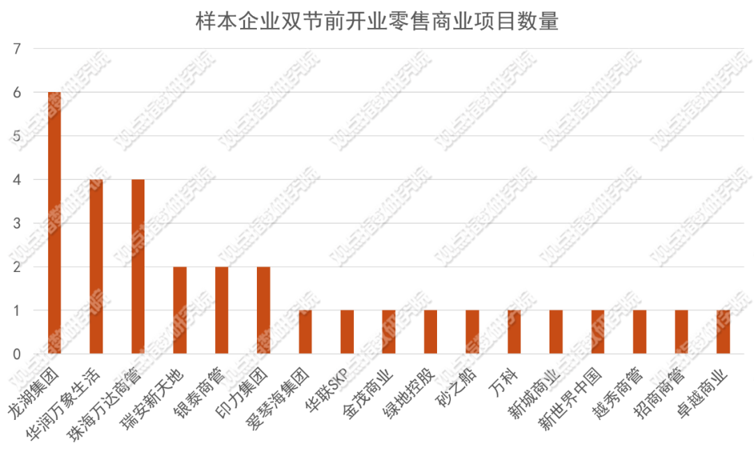 新增供应入市方面,恰逢双节假期,全国商业项目迎来大规模开业潮。据观点指数不完全统计,9月下旬至10月初,18家样本企业全国范围内开出了31个零售商业项目,总体量超过314万㎡。