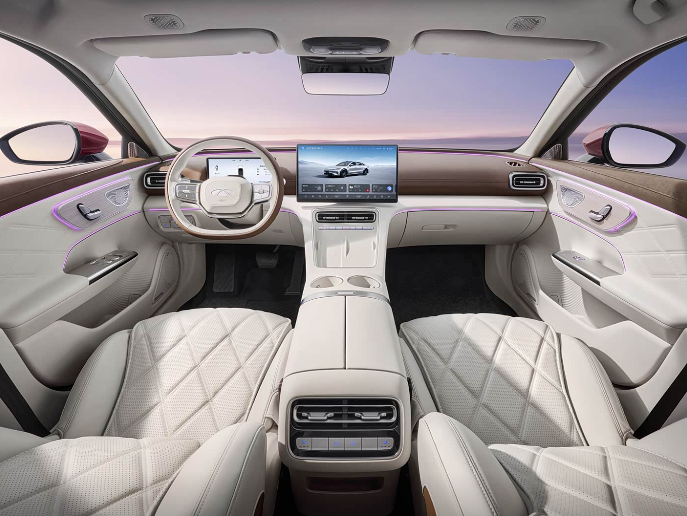 移步至车内,风云A9L的座舱相当具有高定风格,简洁的仪表台配合大面积软性材质包覆,以及恰到好处的金属镀铬件,无论看起来还是摸起来都相当具有档次感。中控台搭载15.6英寸悬浮式中控屏,内置灵犀智舱2.0和同级唯一8255车规级芯片,交互体验自然不必多说。