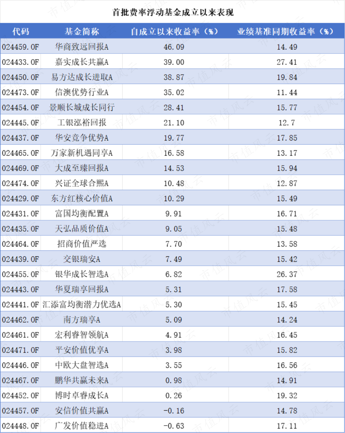 Choice数据显示,截至11月10日,首批26只浮动费率基金的自成立以来收益率情况如下: