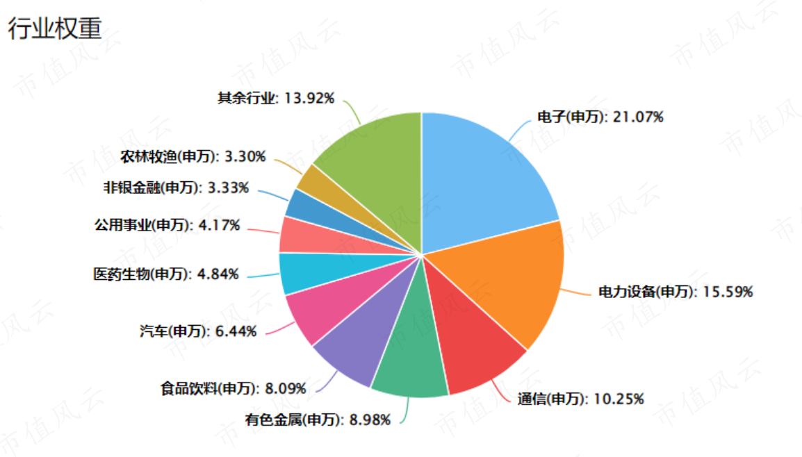 中证800成长指数作为成长风格的代表,Choice数据显示,在电子(21.1%)、电力设备(15.6%)和通信(10.3%)三大高新行业合计占比超46%。