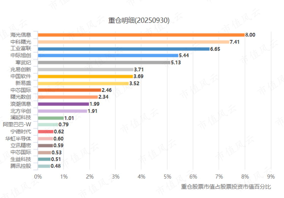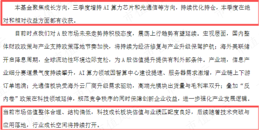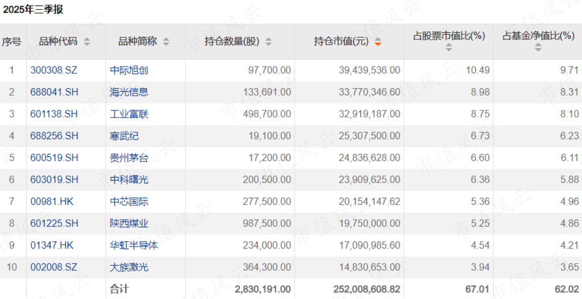基金经理李涛持仓聚焦成长方向,三季度增持AI算力芯片和光通信等领域,前三大重仓股为中际旭创、海光信息、工业富联。