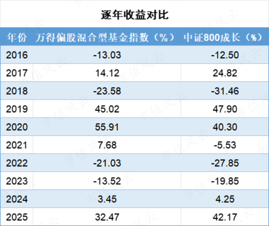 从历史数据的回溯来看,中证800成长指数所展现的进攻性不容小觑。以涵盖全市场的万得偏股混合型基金指数为参照,在2016年至2025年的十年间,该指数有多达五年未能跑赢中证800成长指数。