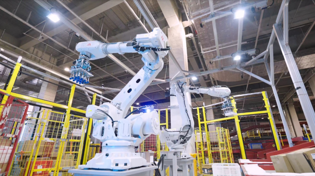 京东物流科技负责人介绍,“狼族”机器人主要基于自主协作的“智慧枢纽”——超脑AI大模型的实时调度,还可以互联互通,协同作战。